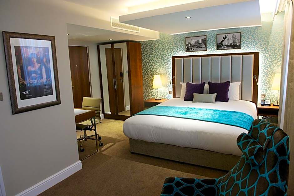 This spacious air-conditioned suite features a separate seating area with a 46 inch flat-screen TV, and views across the city. The room has a super king-size bed and tea and coffee making facilities. The private bathroom benefits from a rainfall shower, hairdryer, and complimentary toiletries.